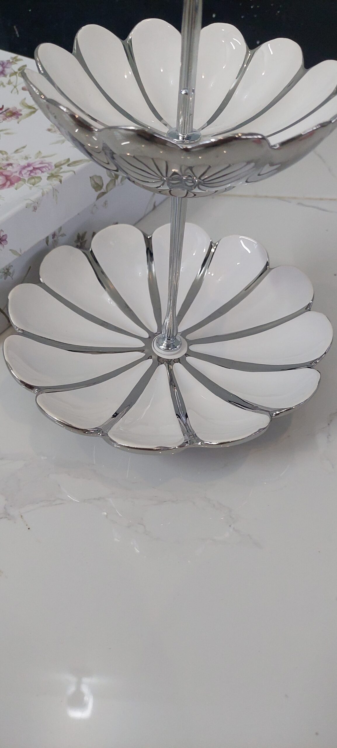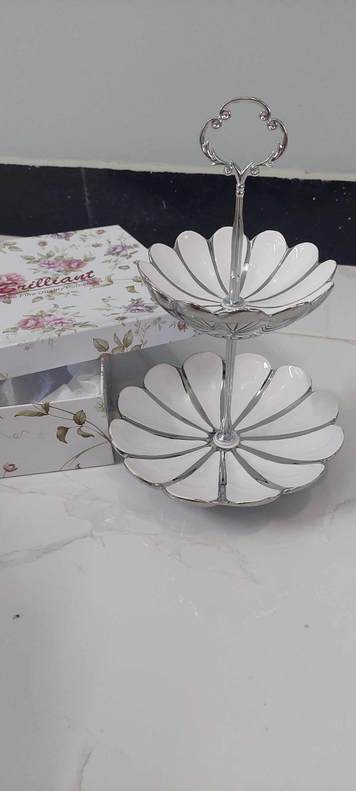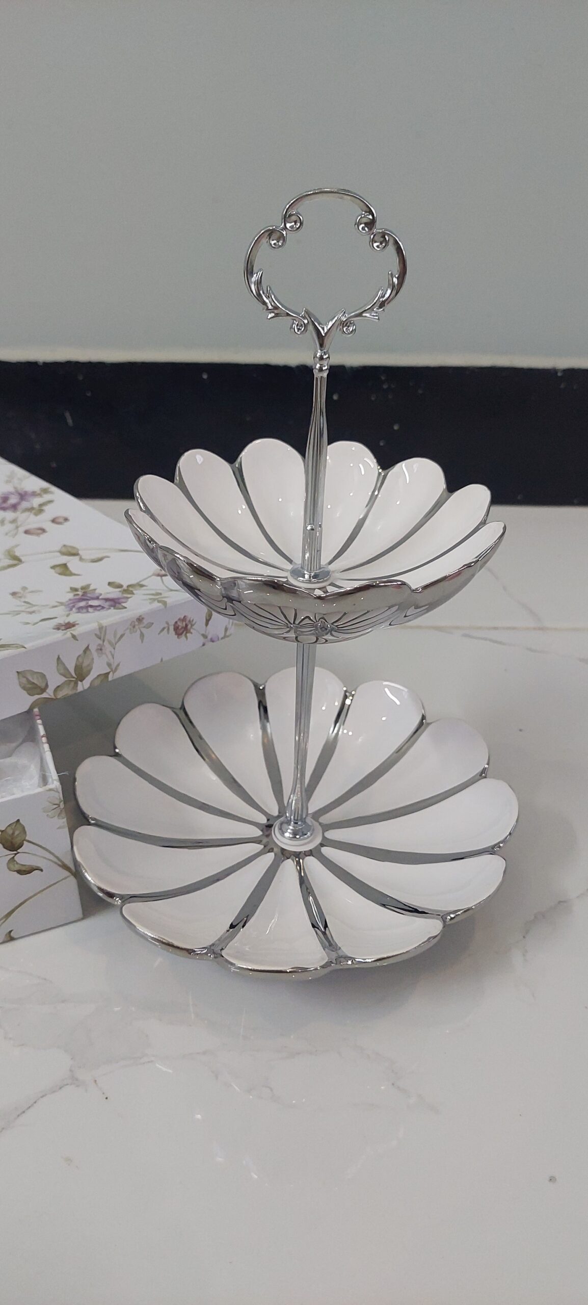 Serve in style with this beautifully designed 2-tier bowl-shaped serving platter, perfect for displaying snacks, fruits, desserts, and appetizers. Its unique bowl design adds depth and elegance, while the two-tier structure saves space on your dining table or buffet setup.