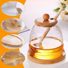 Glass Honey Jar with lid+plate & Honey Spoon