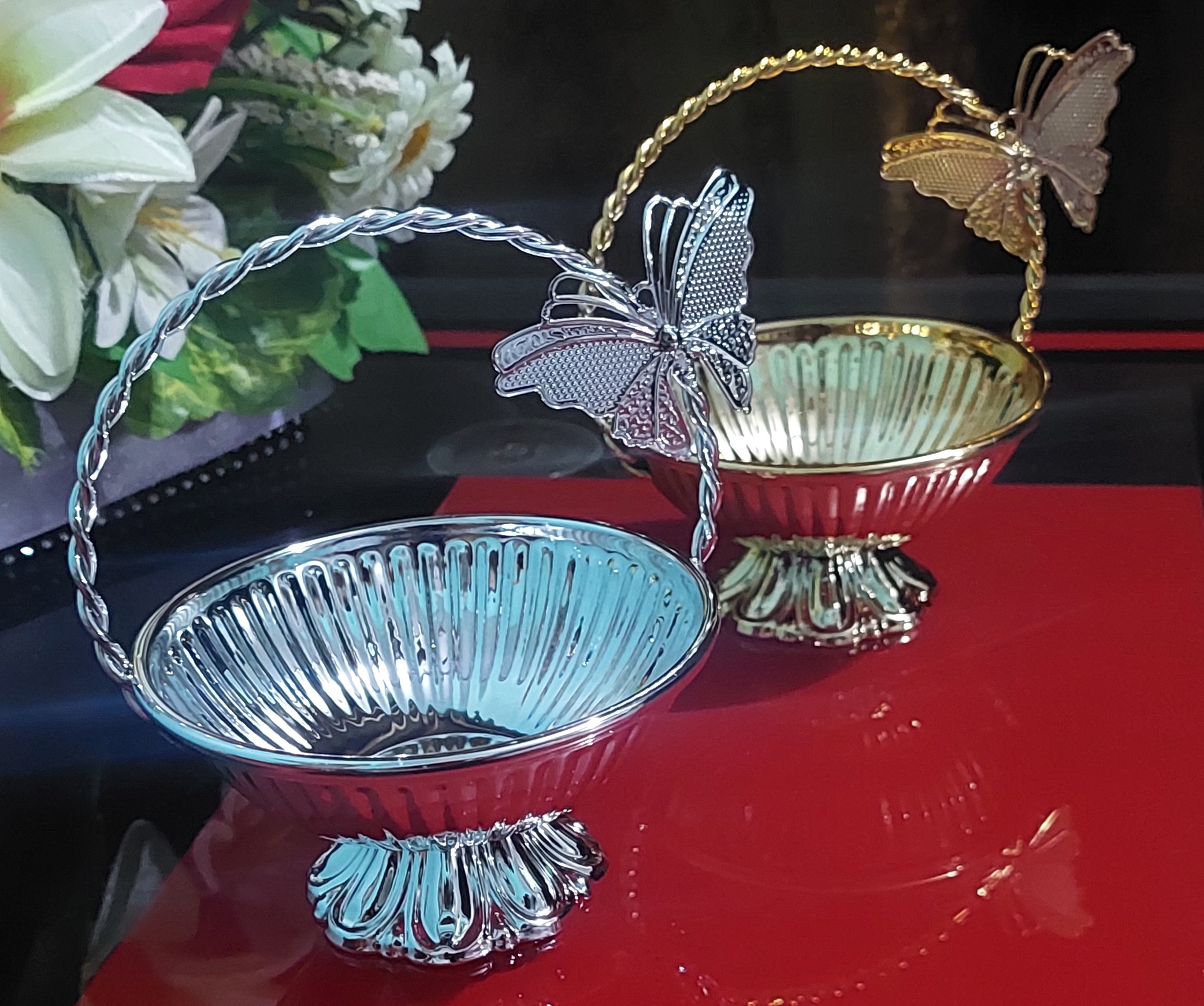 Add a touch of elegance to your table with this beautifully designed Metal Mini Serving Basket. Crafted with a decorative metal frame and a compact shape, it is perfect for serving dates, dry fruits, sweets, and small treats. Its stylish design makes it ideal for Ramadan, Eid, gatherings, gifting, or everyday use as a charming centerpiece.