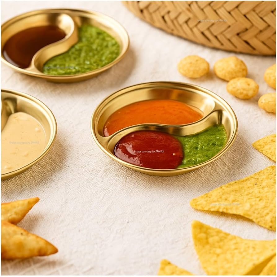 Add a touch of elegance to your serving style with the **Golden Two Portion Dips**. Perfectly designed for serving sauces, chutneys, and condiments, this stylish dip set features two compartments, making it ideal for pairing flavors in one compact and beautiful piece.