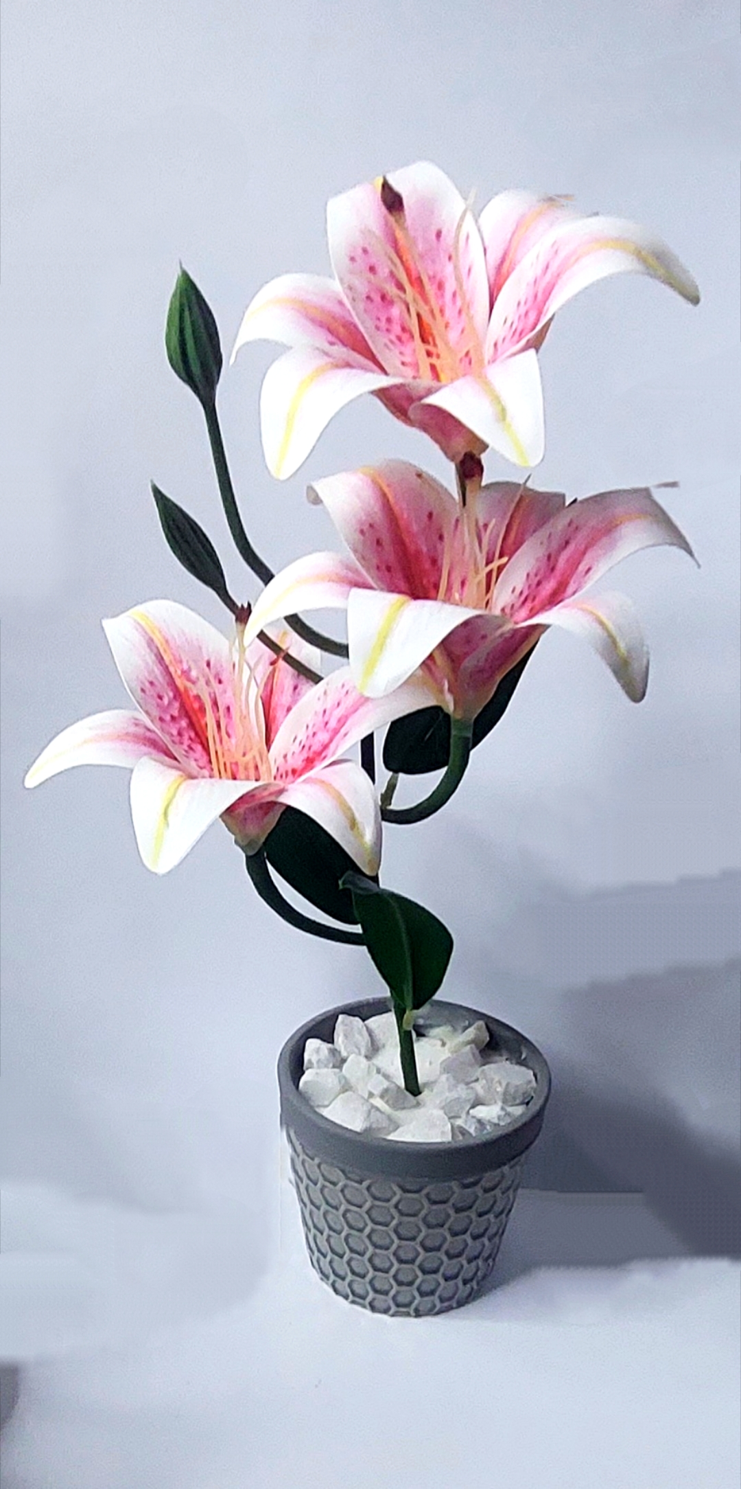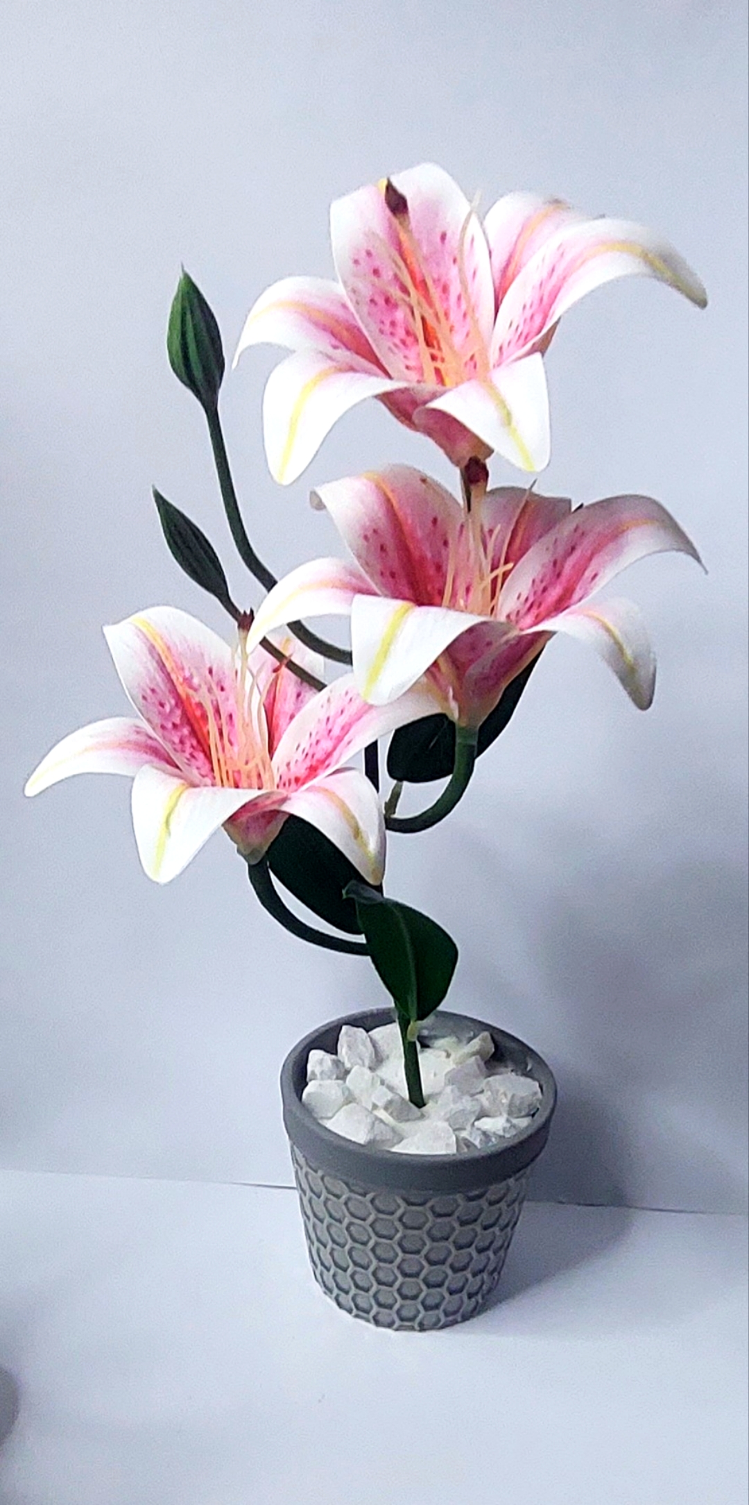 Thoughtfully designed to capture the graceful essence of lily blooms, it offers durability while maintaining a delicate and sophisticated appearance. Perfect for displaying fresh lilies, artificial flowers, or seasonal arrangements, this vase adds a touch of nature-inspired charm to any space. Whether placed on a dining table, console, or sideboard, it creates a serene focal point that complements both modern and classic décor. A perfect blend of artistry, style, and grace.