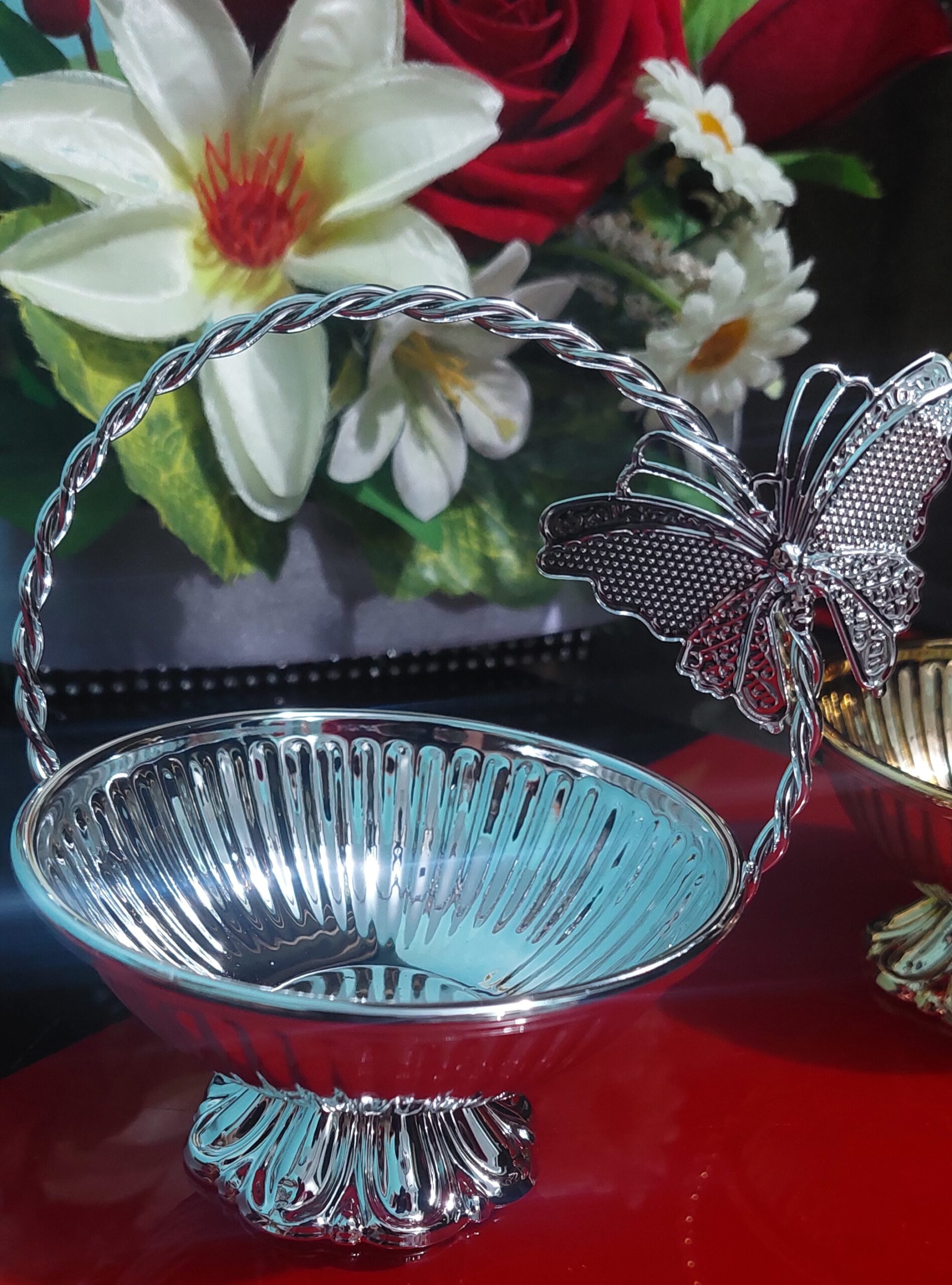 - Add a touch of elegance to your table with this beautifully designed Metal Mini Serving Basket. Crafted with a decorative metal frame and a compact shape, it is perfect for serving dates, dry fruits, sweets, and small treats. Its stylish design makes it ideal for Ramadan, Eid, gatherings, gifting, or everyday use as a charming centerpiece.